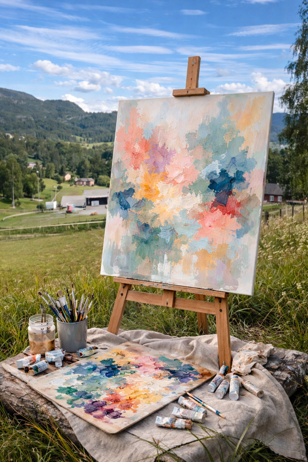 På ValenRanch, omgitt av vakkert landskap, fjord og fjell, inviterer vi til eit intimt kunstretreat med fokus på skaparglede, utforsking og fri utfalding.
