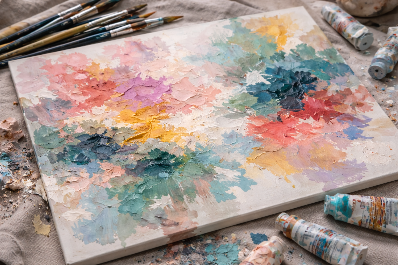 Du får ei enkel innføring i teori og teknikk, før vi jobbar vidare med mix media, portrett og abstrakt uttrykk – med god plass til leik, personleg preg og eigen prosess.