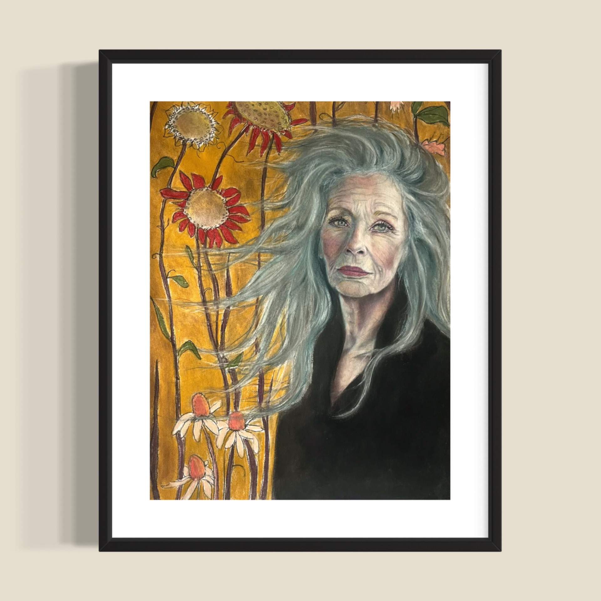 Softpastell på vakkert tynt kinesisk rispapir. Det svarte har innslag av blekk og "angeldust"
